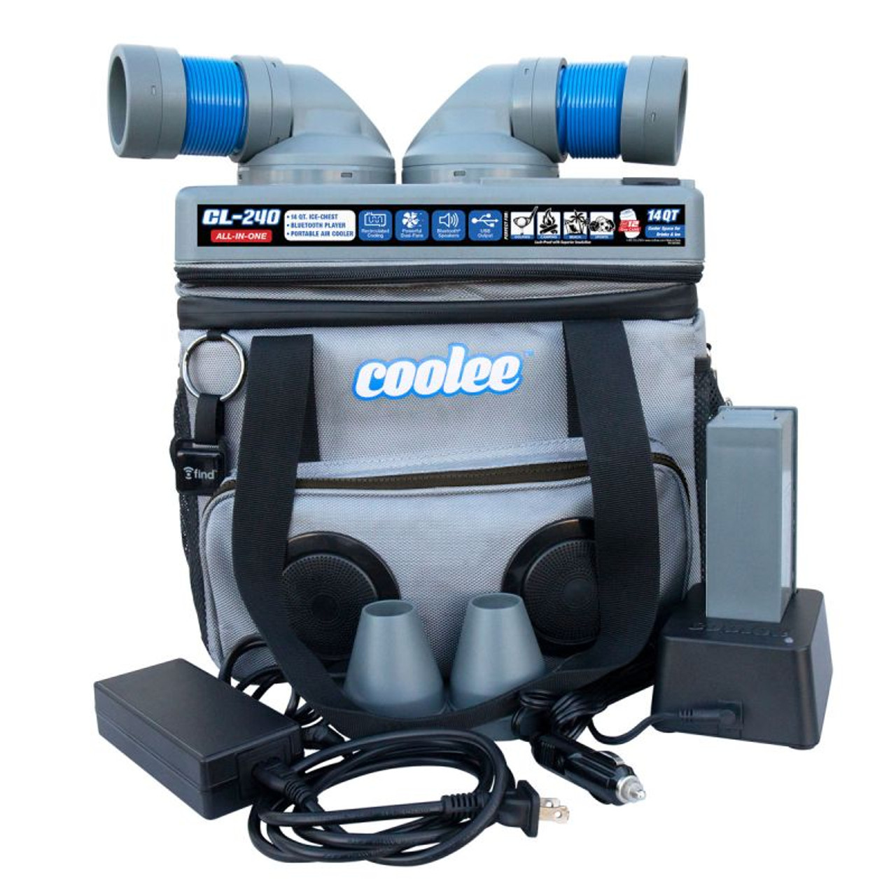 The Coolee CL-240 is an all-new 3-in-1 device. It’s a portable air cooler, an ice-chest, and a Bluetooth player in one convenient package, and it’s been designed to keep you and your refreshments cool wherever life takes you. The CL-240 is compact and rechargeable, making it perfect for golfers, campers, pilots, boaters, athletes, or really just anyone else looking to stay cool in hot weather. This proven take-it-anywhere soft sided cooler is sure to become your favorite piece of gear for your recreational adventures as well as when you’re just chilling in the backyard.