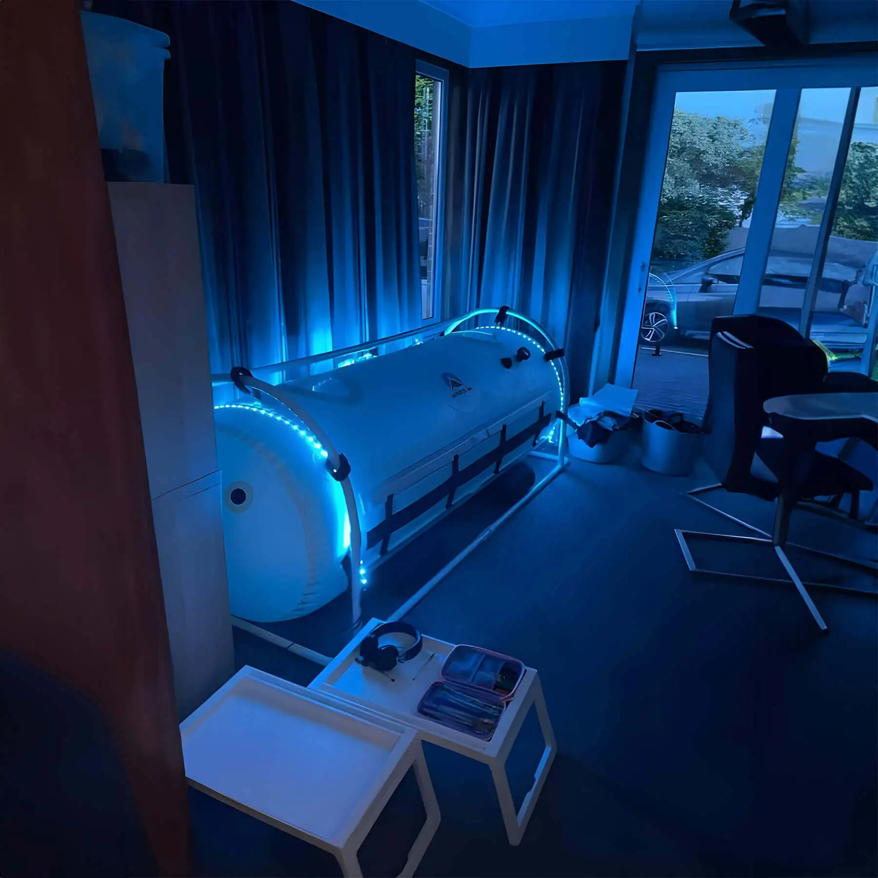 - Double sided full length zippers for easy entry and exit (can be operated from the inside or the outside of the chamber) — easy self-treatment